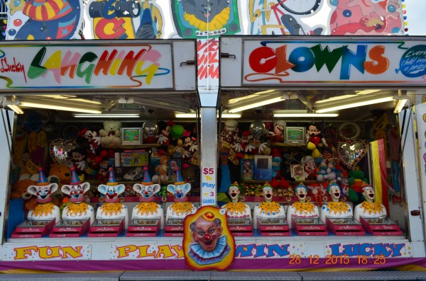 Laughing Clowns are certainly the most played game in the whole show circuit as they cater for both young and old alike. Not only do we have the laughing clown heads, we also have our exclusive Laughing Koala Clowns. The koala being an Australian icon, makes a popular and eye-catching display that people of all ages can relate to. The player is sold five balls and the total of the five balls has to add up to one of our 16 winning numbers to win a great prize. Should a player not match one of our winning numbers, they will still receive a small prize.