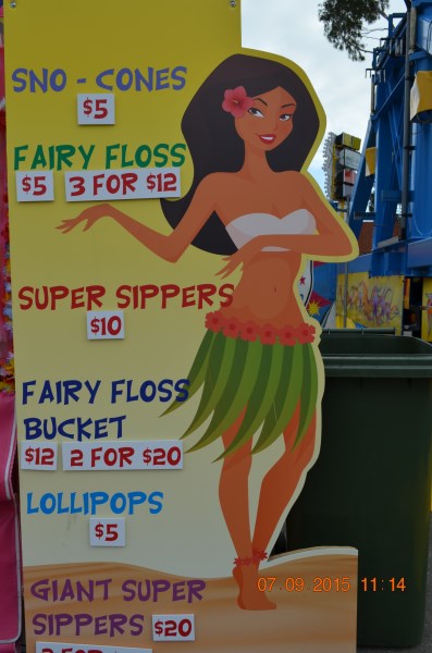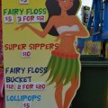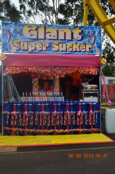 items: Fairy Floss, Sno Cones, Supa Suckas, Lollipops, Water, Soft Drinks and Popcorn.
